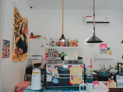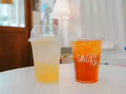 Looking for a place to cool off in this heat? S'more Cafe Huahin is a clean, white cafe located in the heart of the city. The interior is decorated with a touch of vintage furniture, making it a perfect spot for taking photos. The cafe offers a variety of drinks, including Honey Americano and Peach Soda. We ordered Peach Soda and Honey Lemon Soda, and they were delicious! The photo spots are so cute and colorful, making it a great place to hang out. The best part is that the cafe is pet-friendly, so you can bring your furry friends along!