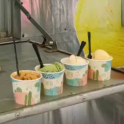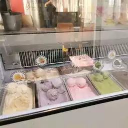 The ice cream here comes in a variety of flavors. There are both cups, cones, and waffles. There are also various types of drinks to choose from.