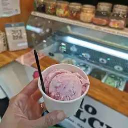 We ordered 1 scoop of cherry ice cream. It costs 69 baht per cup. The ice cream is thick and chewy. It's delicious. The cherry flavor is rich and there are pieces of cherry in the ice cream. It's so delicious.