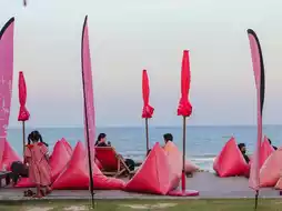 There is a very popular Bali-style cafe, Top Seacret Beach Cafe.