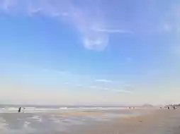 Wide sandy beach, the sound of waves, the sea breeze, and the clear sky, it's great!