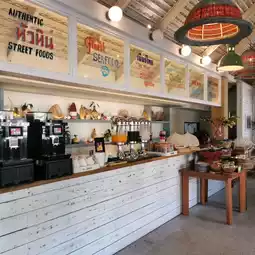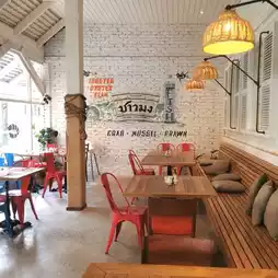 This time we visited Hua Hin, we stayed at The Peri Hua Hin Hotel. This hotel has a famous restaurant, Chow Mong (CHOWMONG LOCAL KITCHEN). There are many types of food here. The interior decoration of the restaurant looks beautiful. The color tones are white, blue, brown. The furniture is mainly dark brown wood, giving a simple, comfortable and warm feel.