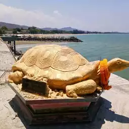 📷 Wat ThamKhaoTao is located on the edge of Khao Tao Beach, next to Khao Tao Reservoir. We rode a motorcycle from Hua Hin town. On top of the temple, there are sacred objects for worship and requesting a blessing. It was built to look like a cave. There are many sculptures, such as the Bodhisattva, Luang Pu Thuat, Phra Sangkachai, Luang Pho To, Guan Yin with a thousand hands, Phra Yulai