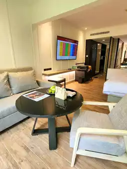 🛏 Room: Book directly with the hotel, the type called Pet Friendly Suite, 2 bedrooms (by connecting the Executive Suite + Deluxe Room). This room type has only 1 couple.