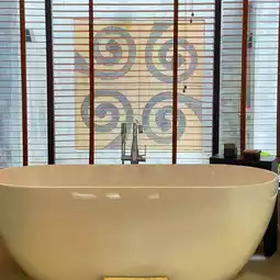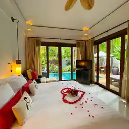 The villa room with a private pool (Private Pool Villa) has a spacious area, divided into sections, providing privacy. The shower area is both outdoors and in the room.