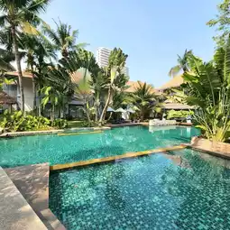 Overall, it is good, quiet, comfortable, shady, refreshing, lots of trees☘️☘️In the morning, soft light shines into the swimming pool in the morning💦💦Another good choice in Hua Hin🐶🐶