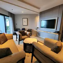 🛌 Room: Stay in a 1 Bedroom Suite with Beachfront access, with only 2 rooms of this type in the hotel. It is divided into 1 bedroom and 1 living room with a comfortable sofa for 3-4 people. The bed comes with a King size bed.
