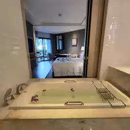 👍 The highlight of this room is the Plung Pool bathtub on the balcony. It is warm water with a clear view of the sea. Because the room is very close to the sea