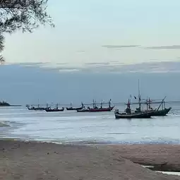 There is a horse riding service along the beach, which is the identity of Hua Hin Beach. At night, there are not many lights along the beach like in Pattaya. It is considered a relatively safe city. There is a night market along the road selling food at night. The houses, shophouses, and shops still preserve the original architecture.