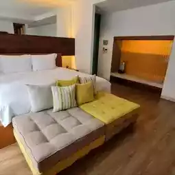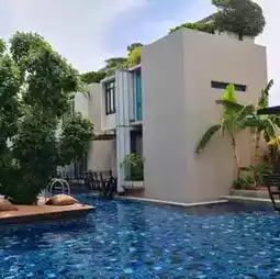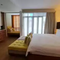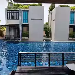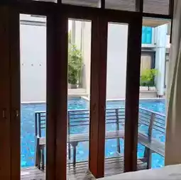 #HuaHinVacation The 48 sq m Pool Access Lazz Suite has a very long poolside balcony, providing a cool breeze. I chose the room with a built-in closet in the bathroom to maximize the bedroom space. It has a long closet, which I really like. There's plenty of room for my belongings. There's also an umbrella provided. From the balcony, you can step directly into the pool, which is very convenient. It's always fun to have fun.