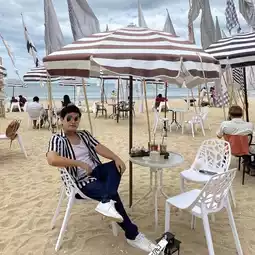 The outdoor area on the beach is a popular spot for taking photos. It is decorated in white tones. There are about 3 cool tents by the sea, 1 in front of the shop and 2 on the side. But if you want to sit in this area It is recommended to come in the evening or when the sun is not too hot, which would be more suitable and romantic. Because when the sun is out, the sand is very hot, but the photos come out very beautiful, and you can fully enjoy the atmosphere of the sea.