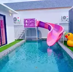We chose to stay at a pool villa from Tagoon.OR Hua Hin. This name guarantees pool villas because they provide everything in the house: karaoke, pool table, swimming pool, slide, fancy floats, ice, charcoal stove, kitchenware, disco lights, everything you need to have fun, teenagers, Pai, Pai, Pai😄
