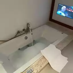 The resort has many photo spots. It’s beautiful from the moment you step into the lobby to the bathroom. There’s also a TV to watch while you soak in the tub.🤩