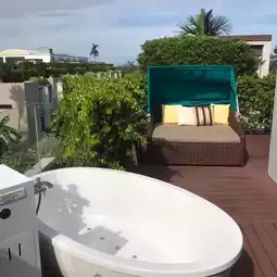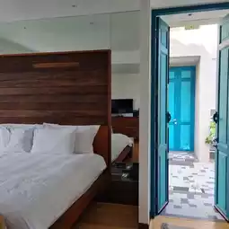 This time, I went with my family, so I stayed in two rooms. There are two types of rooms here: the lower floor is next to the swimming pool, and the upper floor has a private Jacuzzi on the rooftop. I stayed for two nights and took turns sleeping there.🤭