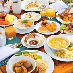🥐 Breakfast: The breakfast line is very complete. Both American Breakfast, Thai food corner, noodles, Khanom Jeen, sticky rice with grilled pork, Cold Cut salad, various bakery, fruit juice and Khanom Krok, which foreigners love very much.