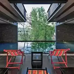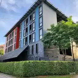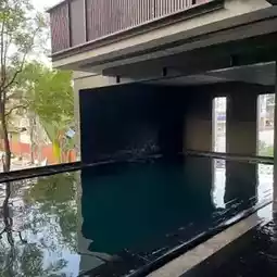 What I like the most is the swimming pool in the building. It is very good. You can swim and relax. It is not hot. There are also orange beach chairs for you to lie down and enjoy the cool breeze. It is very comfortable.