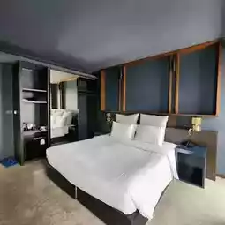 #Hua Hin Hotel This time in Hua Hin, let's change the atmosphere. Let's try staying in the city. Hua Hin Habitat 90 is a new hotel that has just opened not long ago. Many people may not know it yet. The hotel is decorated cutely, beautifully, and eye-catchingly with a unique but classic and very warm tone.