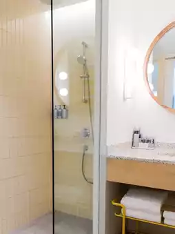 The swimming pool here is unique because it is decorated with a yellow beach table. Taking pictures here matches the sky and the sea view. Anyone who comes here must not miss taking pictures in this area. As for the rooms, I must say that they are very clean and very good. They have complete amenities, including the softest beds. I must say that it is very worthwhile to relax on your holiday here.