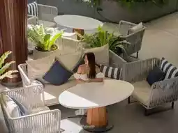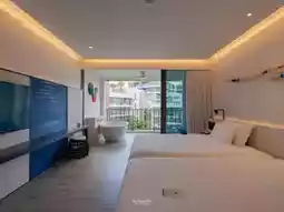 VERSO hua hin - a Veranda Collection Boutique resort on the beach in Hua Hin, near Khao Takiab. The design is very chic in white and blue tones. It is quiet and private. There are only 39 rooms. Our room was a Veranda 2 Seas room with a bathtub on the balcony. The room is spacious and the room tone is very comfortable. Perfect for relaxation