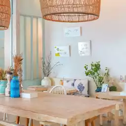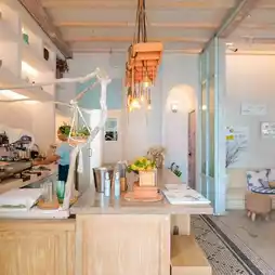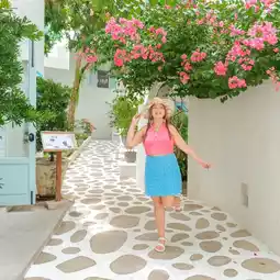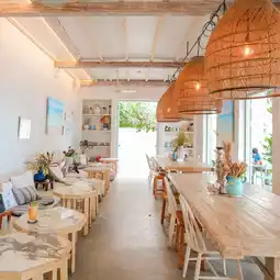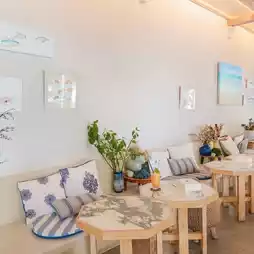 #VisitHuaHin 🌸✨A super cute Hua Hin cafe located in the Resort De Paskani Hotel. This hotel is so popular right now that I wanted to check in. However, this time, I didn't stay at the hotel. At first, I thought that this place could only be used by guests, but I happened to see a review that said that they opened a cafe zone for non-guests to use as well, so I decided to go. What were I waiting for? Just stopping by to sip coffee and take some beautiful photos is worth it. The photo spots are so cute, I can't even say it. The blue and white colors are so soft and cute. The corner that really caught my attention was the pink bougainvillea flowers on the white wall. It looked so Korean that I had to find a matching outfit. The interior of the shop uses white and cream tones, with wooden furniture and various decorative props. It's cute and warm. If you have plans to visit Hua Hin, I'd recommend stopping by here. It's even better if you're just here to relax, because the hotel is so beautiful. You can take photos that feel like Santorini. Or if you just want to stop by a cafe like Fern, it's also great.