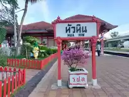 A landmark in Hua Hin that everyone must check in at. The beautiful station building, a traditional wooden structure painted in bright red, stands out from afar, a hallmark of Hua Hin Railway Station.