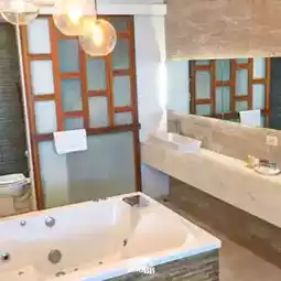 The room we stayed in was a Jacuzzi Deluxe room, designed in a modern style with a bit of Thai influence. The room was very large. The bathroom was also extra large, with a large Jacuzzi bathtub❗ that can accommodate up to 2 people. 🛀✨