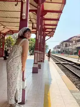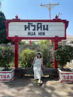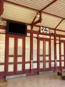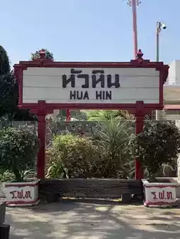 This place is Hua Hin Railway Station, which stands out with a white-cream building with dark red accents. It has a classic retro style. No matter which angle you take a photo, it is beautiful. Both Thai and foreign tourists love it.