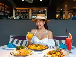 🍽️ We had dinner at 𝐑𝐞𝐬𝐭 𝐒𝐜𝐞𝐧𝐞. Here, they cook delicious food. The tom yum pizza is very delicious. There are also drinks such as fruit juices, cocktails, mocktails. Sit and listen to chill music. The atmosphere by the pool