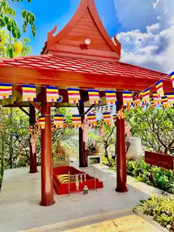 There is a nice little Bodhi Tree here and several shrines along the path. Quite a strong breeze at the top straightening the flags and creating soothing sounds with the Wind Chimes. I was here around 9.45am and there was no one else for the full hour I was there.