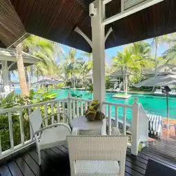 🌴 We chose the Pool Village room, right next to the pool. Perfect for families with children. The air is shady and you can swim all day.