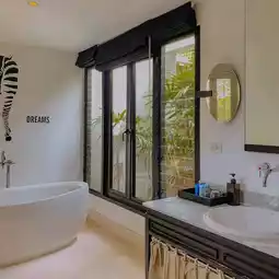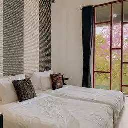 We stayed in the Retro Villa room, a two-story villa with a cool style. It has complete facilities! It's very big. So big that we think if there are 4-5 people, this room will be great and very enjoyable. 5555 The bed is soul-sucking, comfortable to sleep in. Step out and you can get into the pool. There is a sea view 🌊