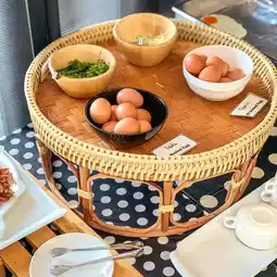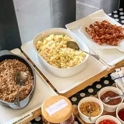 🌅 As for breakfast, the food line may not be much and it's a normal buffet breakfast. But it's okay. / I like and got it both days I went: pork and mushroom congee. And there are soft-boiled eggs provided. Good.