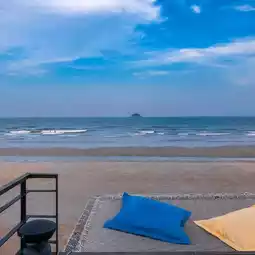 This time in Hua Hin, I went to stay near Polei Beach / Khao Tao. I chose The Blue Sky Resort 🛖, a beachfront accommodation with a beautiful beach, very wide, very quiet, almost like a private beach. If you really want to relax, this place is great.