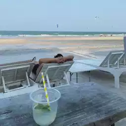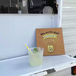 Once you order, you can stand and sip, sit and sip, take photos, or even lie down and sunbathe, it's super chill. It's really good, let's go.