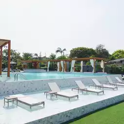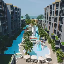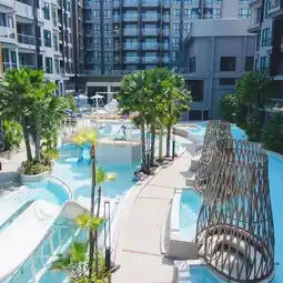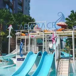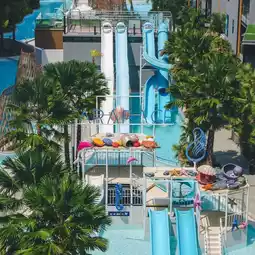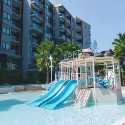 The highlight of the hotel should be the swimming pool. There are many types of slides for both young and old children to play. There is a shallow water area for young children.
