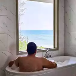 The room we stayed in was a Seaview room where you could lie down and see the sea view very closely. The room was open with glass on almost all sides, allowing plenty of light to let you see the view and chill. If you want to take a walk, you can go down to the beach.