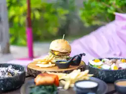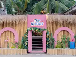 They also have a cafe by the sea, which you can walk through the hotel. The cafe is called Top Seaacret. It is a cafe decorated in a Balinese style. The main color is pink. It is very cute. Here, they are ready to serve food, desserts, and drinks. The atmosphere is good. There are many photo spots. If you are not staying at the hotel, you can stop by the cafe.