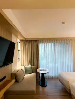 🛏 We booked a Twin room, 38 square meters, on the 2nd floor, with a view of the swimming pool. The room is new and very clean. The bed is very soft. The bathroom and toilet are connected. There is a sliding door to separate the bathroom. The shower box and toilet are separated. The size is just right. It is not cramped.