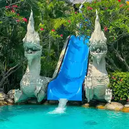 👙 There is a large swimming pool, slides