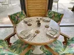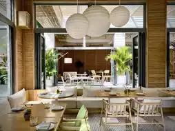 🏡 The Restaurant zone is decorated in a simple, luxurious style, like a tropical beachfront vacation home. The glass doors can be opened to let in the sea breeze, chilling out.
