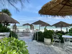 🍸 Let me recommend a beautiful restaurant with a sea view, located on the beach in Hua Hin where you can swim. The sand is fine, the beach is wide, and the water is clear. This beach area is quite beautiful. In the “Lido” restaurant, both zones are decorated… so different 🥹 … but the vibes are so good. No matter how many times you come, how many times you stop, you can stay for half a day 🥹 every time!