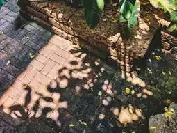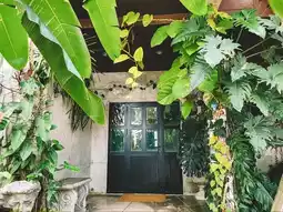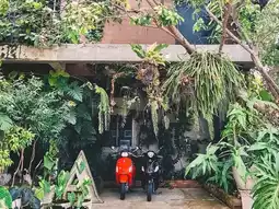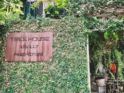 The shop is inside a house covered with trees. The atmosphere is shady. Sitting outside, the air is good and it doesn't feel hot at all. The atmosphere in the shop is shady and green with trees all over the shop.