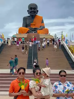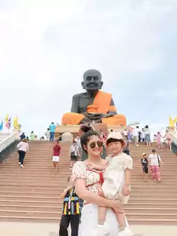 Esther came to pay homage and pray for blessings from Luang Pu Thuad at "Wat Huai Mongkol", another important check-in point in Hua Hin, Tambon Thap Tai, Amphoe Hua Hin, Prachuap Khiri Khan Province. The landmark of the largest Luang Pu Thuad statue in the world.