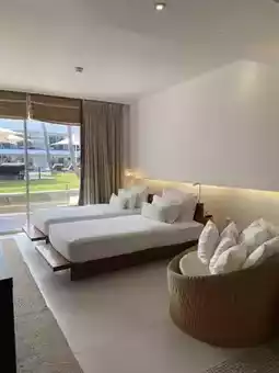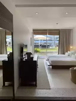 ✨The interior of the room is decorated simply and comfortably. It looks minimal. The white / cream / brown tones make the room look comfortable. In the room, there are robes, pants and slippers with the hotel's pattern that can be grabbed. At the back door of the room, there is a seat to sit and relax. And you can walk straight to the swimming pool.