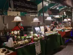 - This market has many restaurants and stalls offering both Thai and international dishes such as steaks, seafood, grills and desserts. There are also alcoholic drinks and cocktails to choose from.
