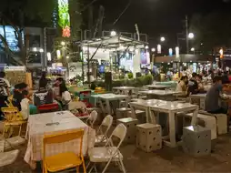 This is a popular night market among both tourists and locals. With its friendly and relaxed atmosphere, the market is decorated with beautiful lights and lush greenery, making it feel like you are in an outdoor park.