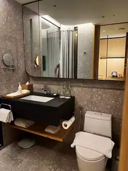 🏨 What impressed me when staying here is the attention to detail from the design and service. There is a Welcome Drink and a welcome screen with the customer's name, making customers feel warmly welcomed. The materials and equipment used in the room are in the same direction, which is environmentally friendly.