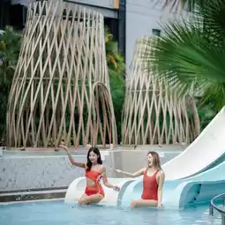 🍬Aqua Play is a large pool, a water park zone, with a large slide in the middle of the hotel. It's perfect for those who love activities or bring their kids to have fun in the water.