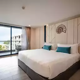 ☀️ Amazing hotel, very large swimming pool, 3 pools, great atmosphere, by the sea, with various types of rooms. Here, 'Best Western Plus Carapace Hotel Hua Hin', this time we stayed in a Deluxe Ocean View room, a fan room with a good size, clean decoration, and a balcony to sit and enjoy the view. It's really good.