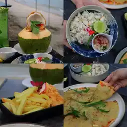 The food here has both savory and sweet dishes. Come to one place and you will find everything! Eat and enjoy the sea view. Or you can walk down to the beach.